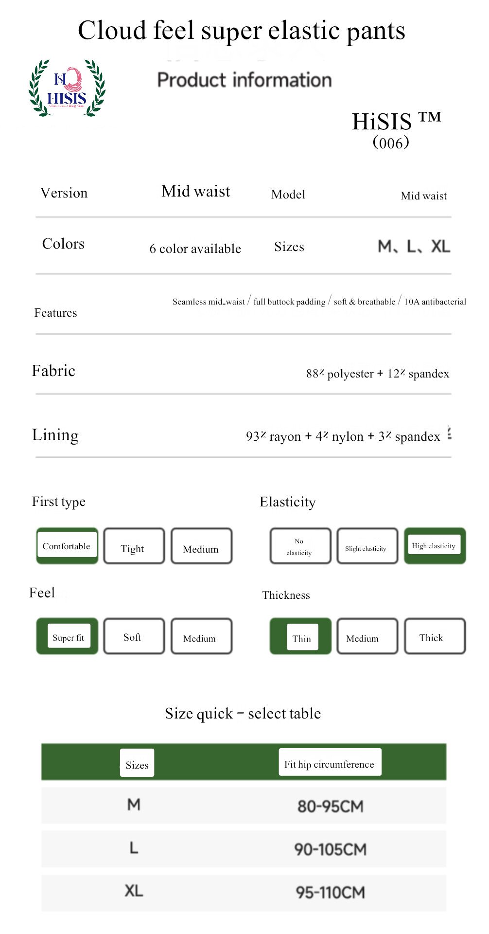 - Crotch Lining: 93% Viscose, 4% Spandex, 3% Mulberry Silk